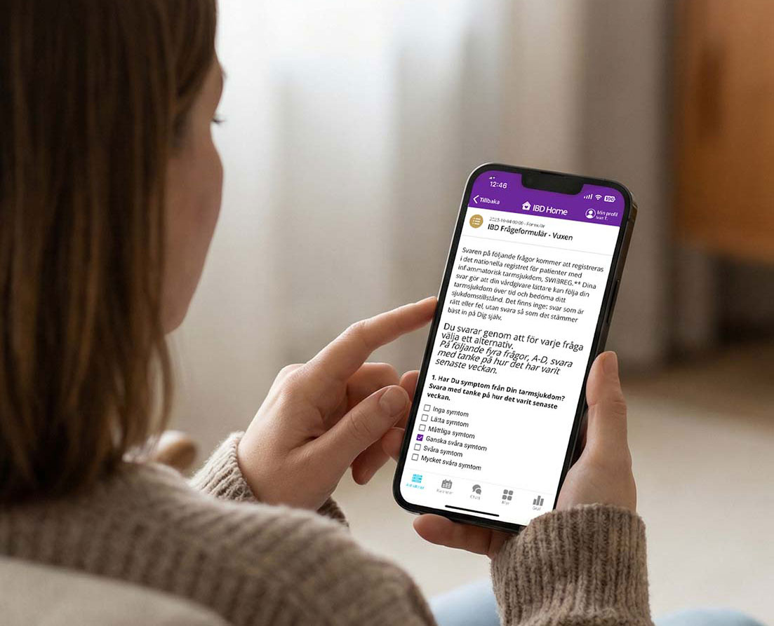 I MIST-projektet har IBD-teamet i Linköping utvecklat en åttastegs egenvårdsplan som konfigurerats i HOPE. Varannan månad registrerar patienten symtom och mäter kalprotektin hemma via sin smartphone. HOPEs regelbaserade AI utvärderar resultaten i realtid och uppdaterar planen automatiskt: ska dosen ökas, ska rektalbehandling läggas till, eller är det dags att kontakta mottagningen? Svaret finns alltid i egenvårdsplanen.